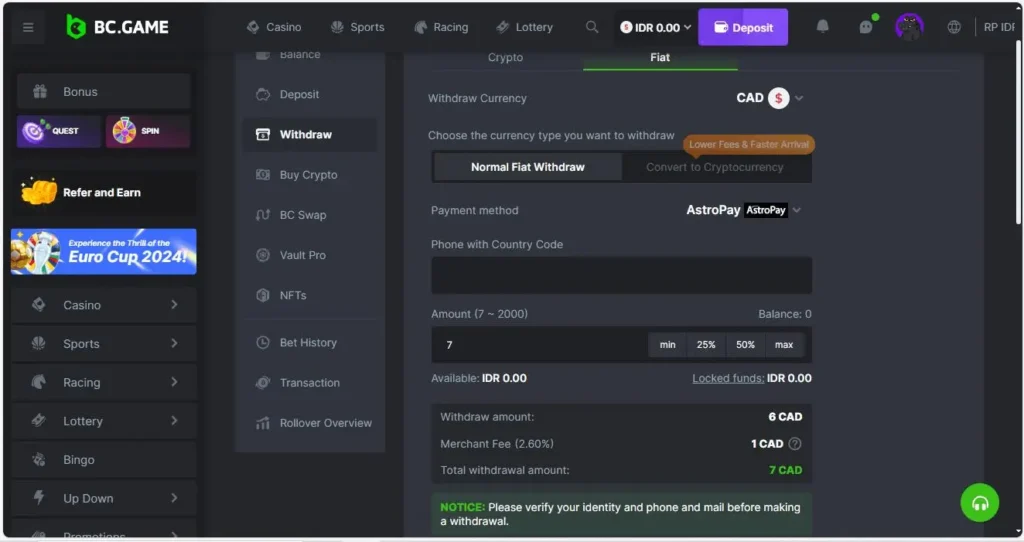 * Solution: BC Game charges minimal fees, but keep in mind that network fees may fluctuate. Check your withdrawal page for up-to-date fee information before completing the withdrawal.